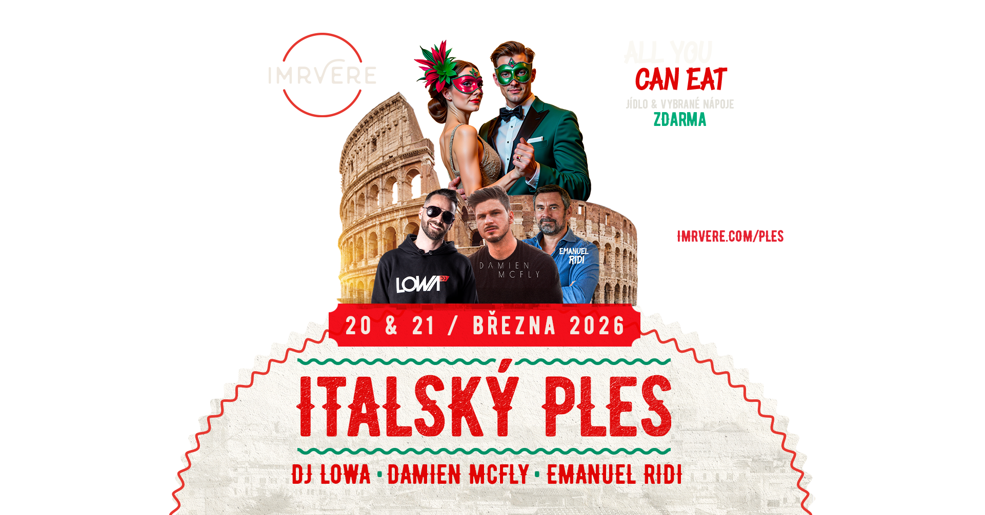 Čeká vás večer plný italské atmosféry od benátských masek až po živá vystoupení, která vás nenechají sedět. V průběhu večera si užijete originální pizza show, neomezený raut s pravými italskými specialitami a další překvapení. Nudit se tu nedá, Itálie bude tentokrát blíž než kdy dřív.